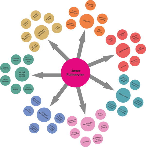 Selbstverständlich zählen auch die Betreuung Ihrer Kunden, die Reklamationsbearbeitung, die Bearbeitung von Rücklieferungen Umtauschen, etc. zu unserem Service.